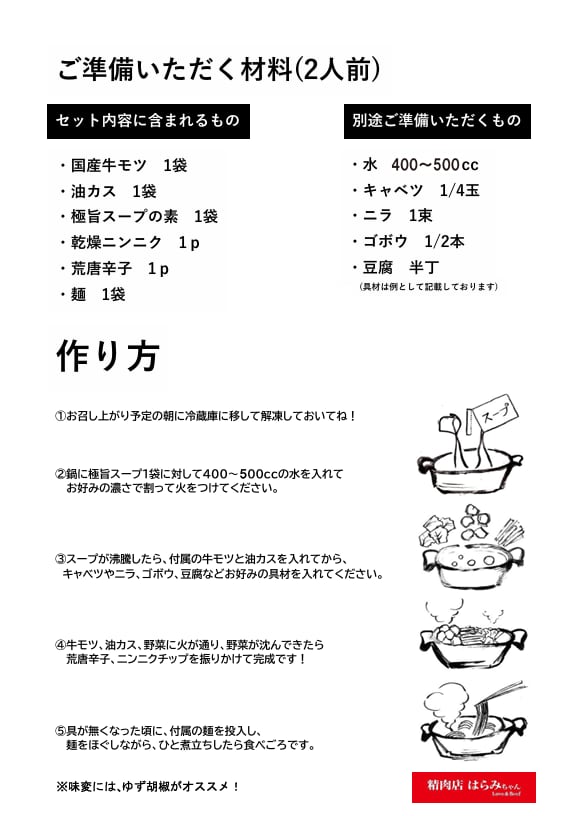 モツ250g、油カス50g